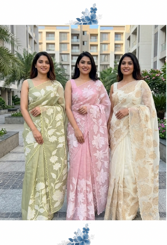 Tissue chanderi saree with applique work MSH175