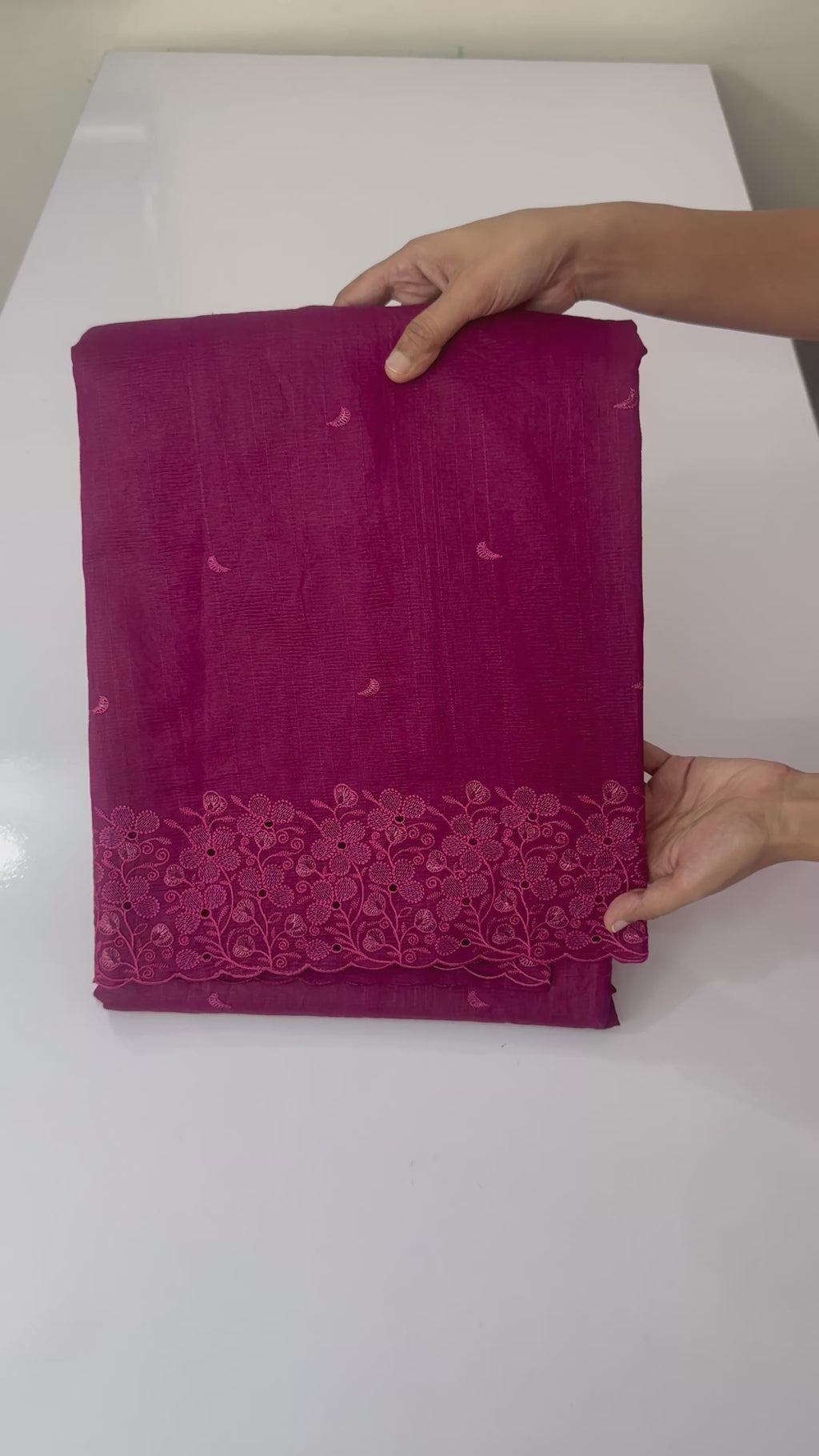 Crushed cutwork Blended tussar silk saree with embroidery- MSB7982 Cranberry