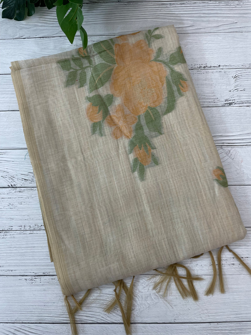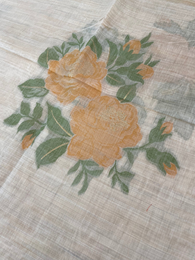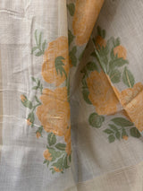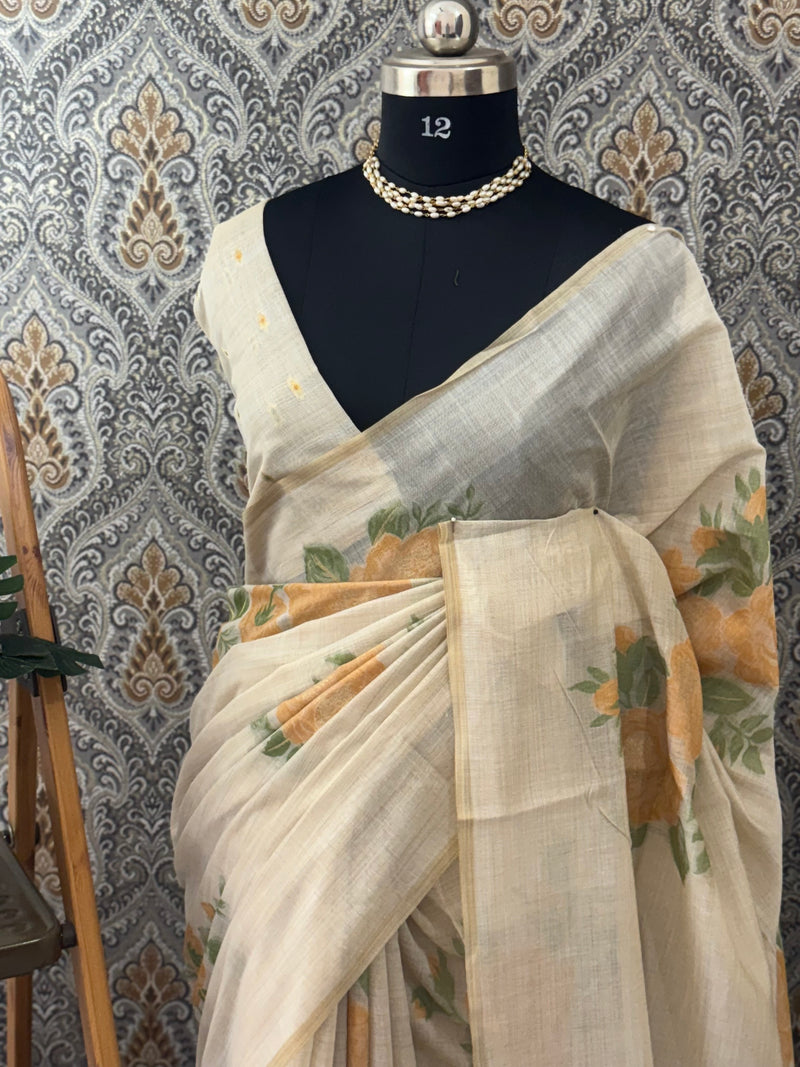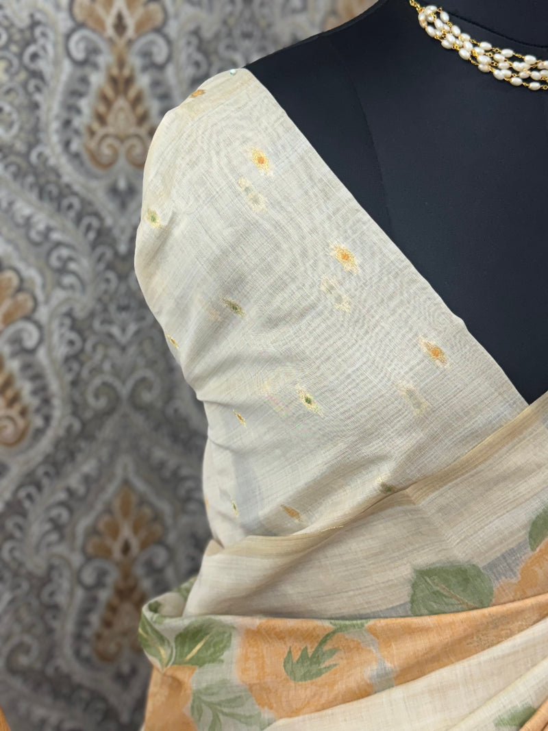 Add a touch of ethnic to your attire by wearing this Indian jamdani saree. Exotic ‘dhakai jamdani’ selection from West Bengal, the sari is a woven traditional craft. The saree has a graceful floral pattern design which makes the apparel stand out beautifully. A timeless crafted piece to give you a chic and classy style statement. Add a piece of statement jewellery to complete the look.