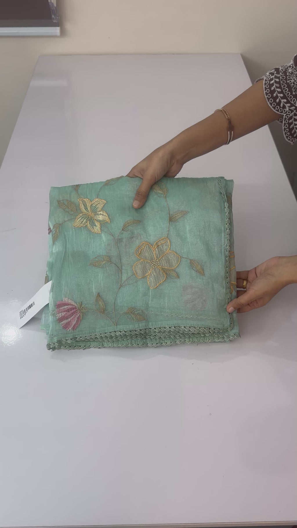 • Luxurious tissue organza fabric with applique work all over the body