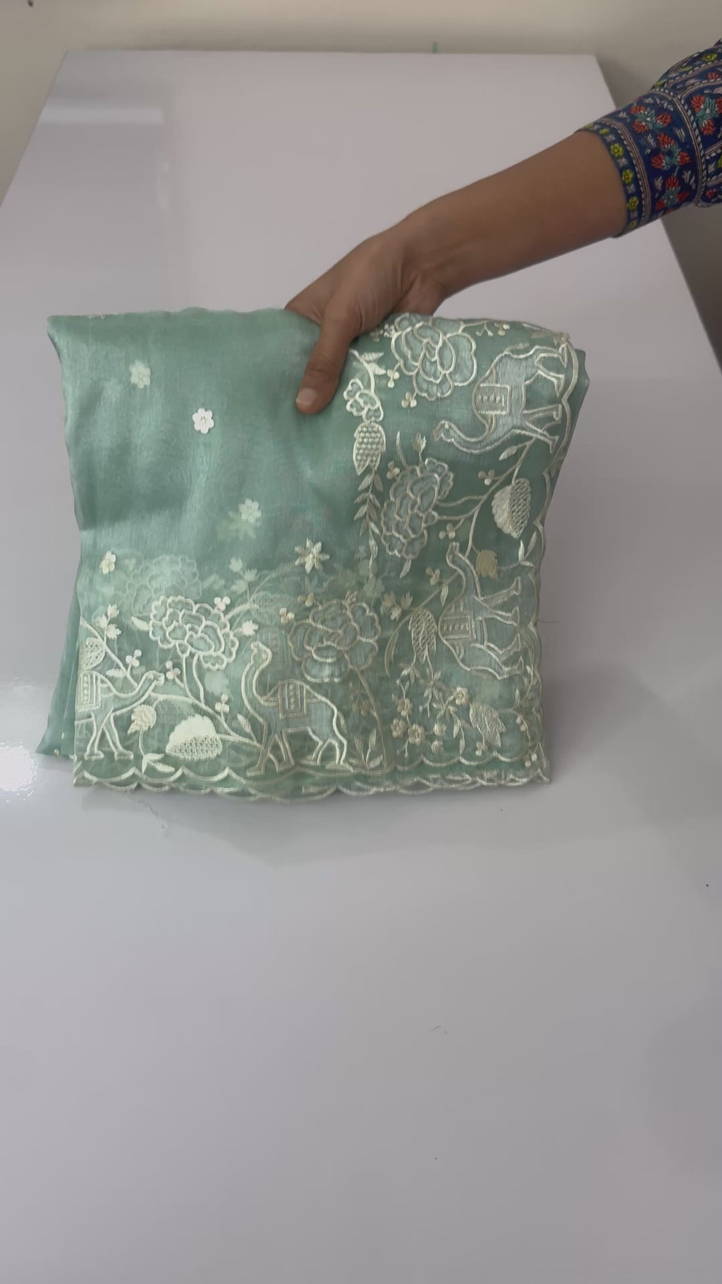 - Luxurious tissue organza fabric with applique and embroidery work all over the body